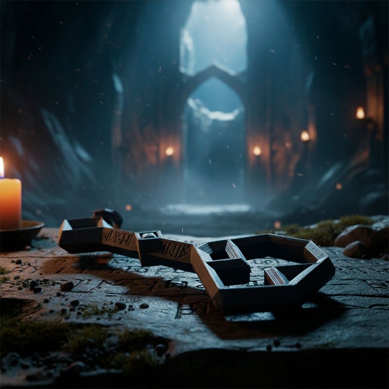Nuestra Llave de Erebor impresa en 3D ha sido modelada con gran fidelidad, respetando las formas geométricas y las runas enanas que la hacen tan característica. Es el complemento ideal para acompañar tu copia del mapa de Thrór o para exhibir en tu rincón dedicado a la Tierra Media.